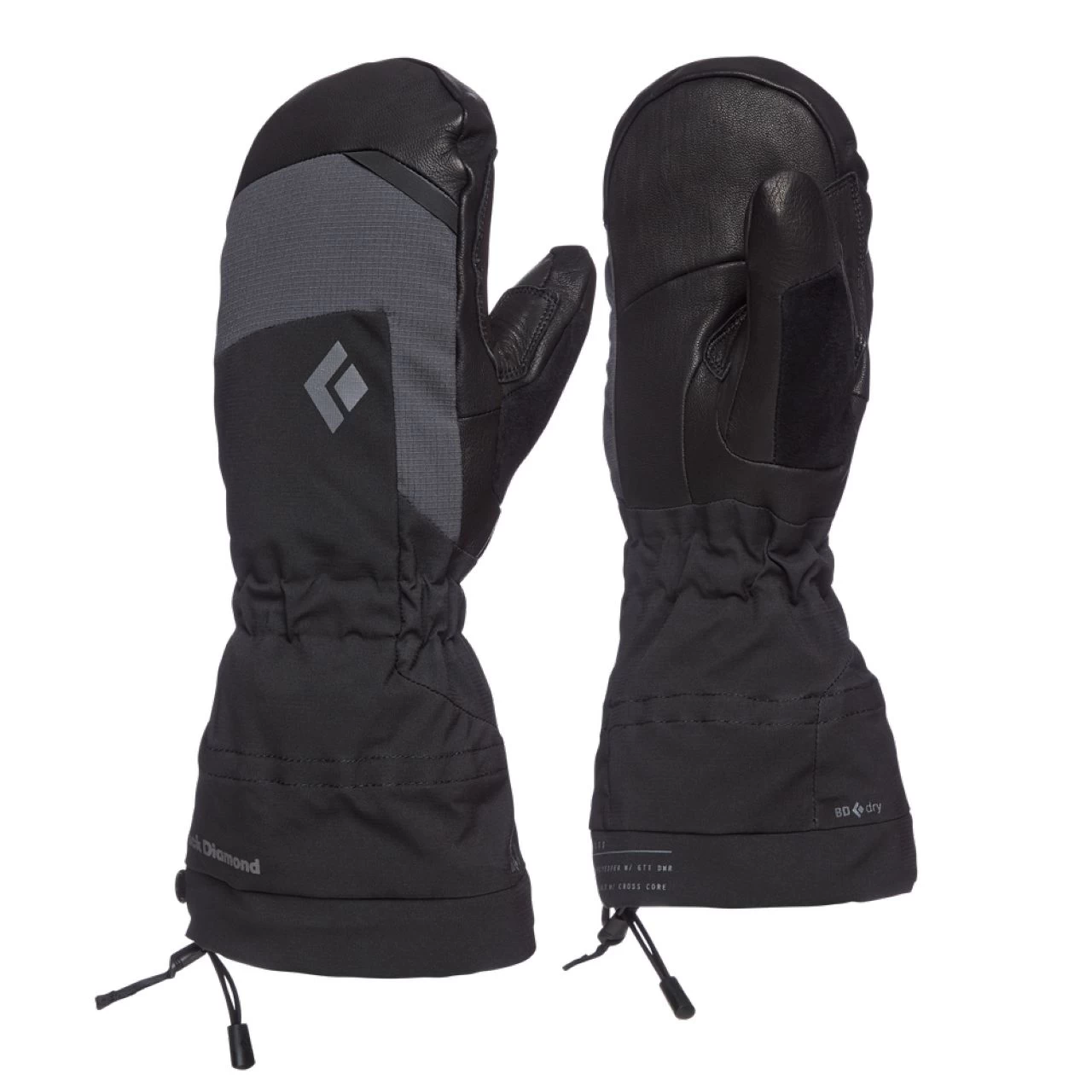 The Black Diamond Mercury Mitt is a popular choice for year-round use and combines a BD.dryâ„¢ waterproof insert with an Empel DWR on the shell. The removable insulated liner, filled with Primaloft Gold Cross Core, dries quickly, and insulates even when wet. A four-way stretch fabric shell and a long gauntlet cuff keep spindrift and moisture outside, while the goat leather palm and additional reinforcement layer stands up to rocky terrain, repeated rope handling and the general wear and tear associated with dedicated mountain use.
