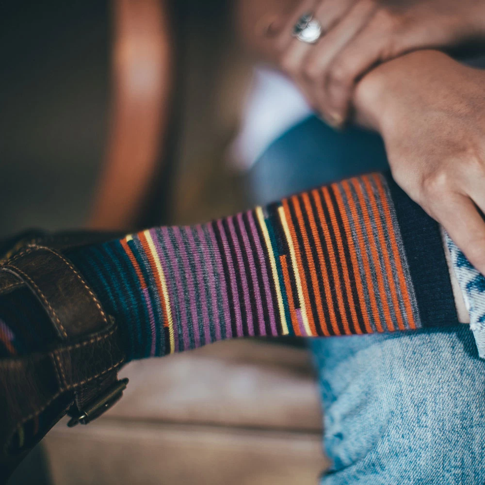 Casual sock with a modern spin on classic stripes