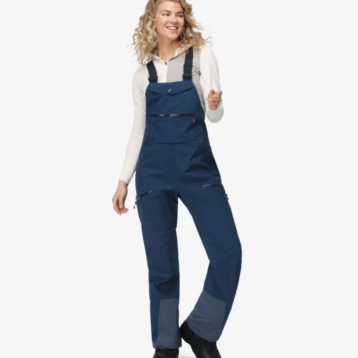 Made in 200D recycled Gore-Tex Pro fabric and inspired by the classic overall, the tamok Gore-Tex bib is Norrona’s most durable and protective freeride pants.