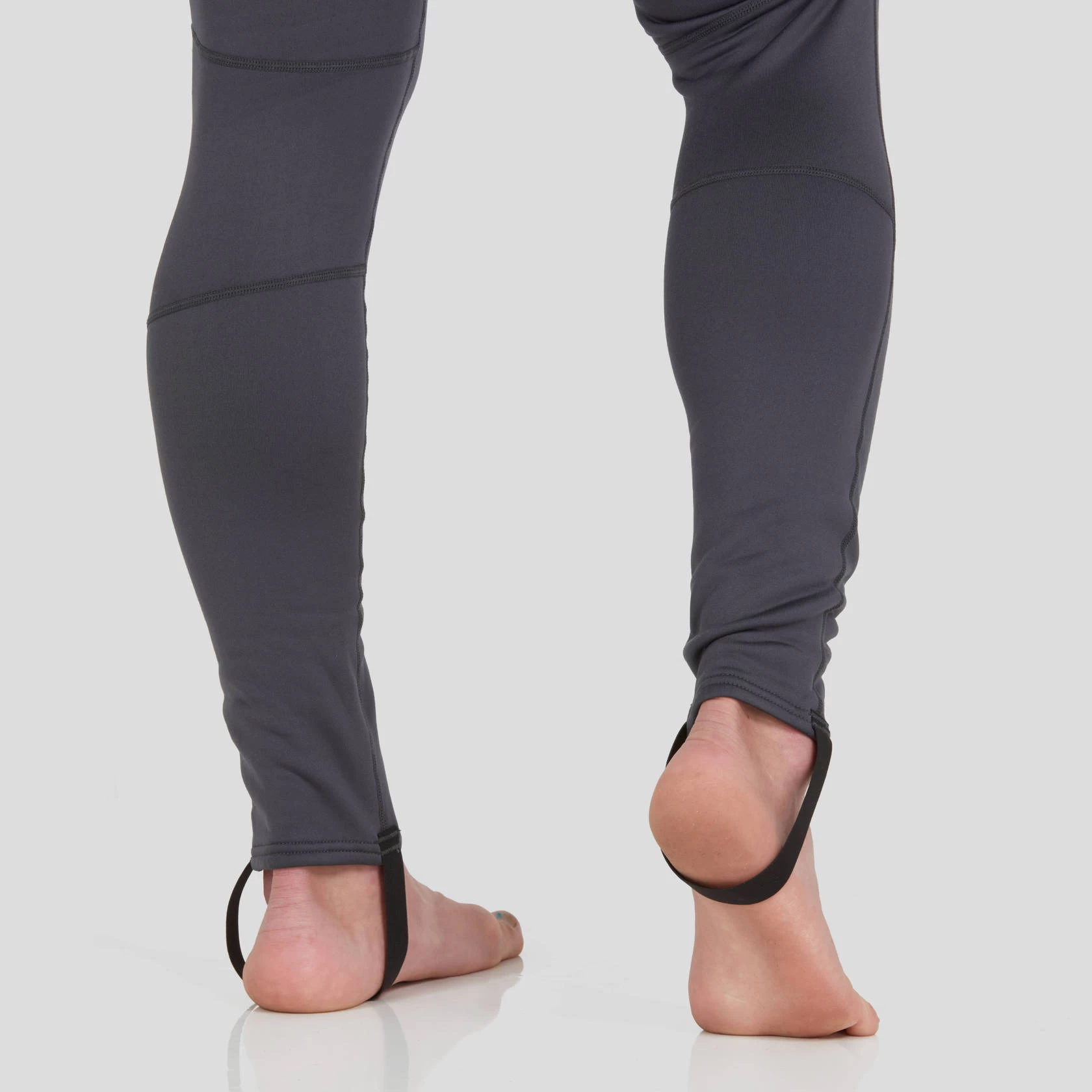 - Stirrups keep legs from riding up and gasket-friendly cuffs create an easier layering experience under a drysuit.
