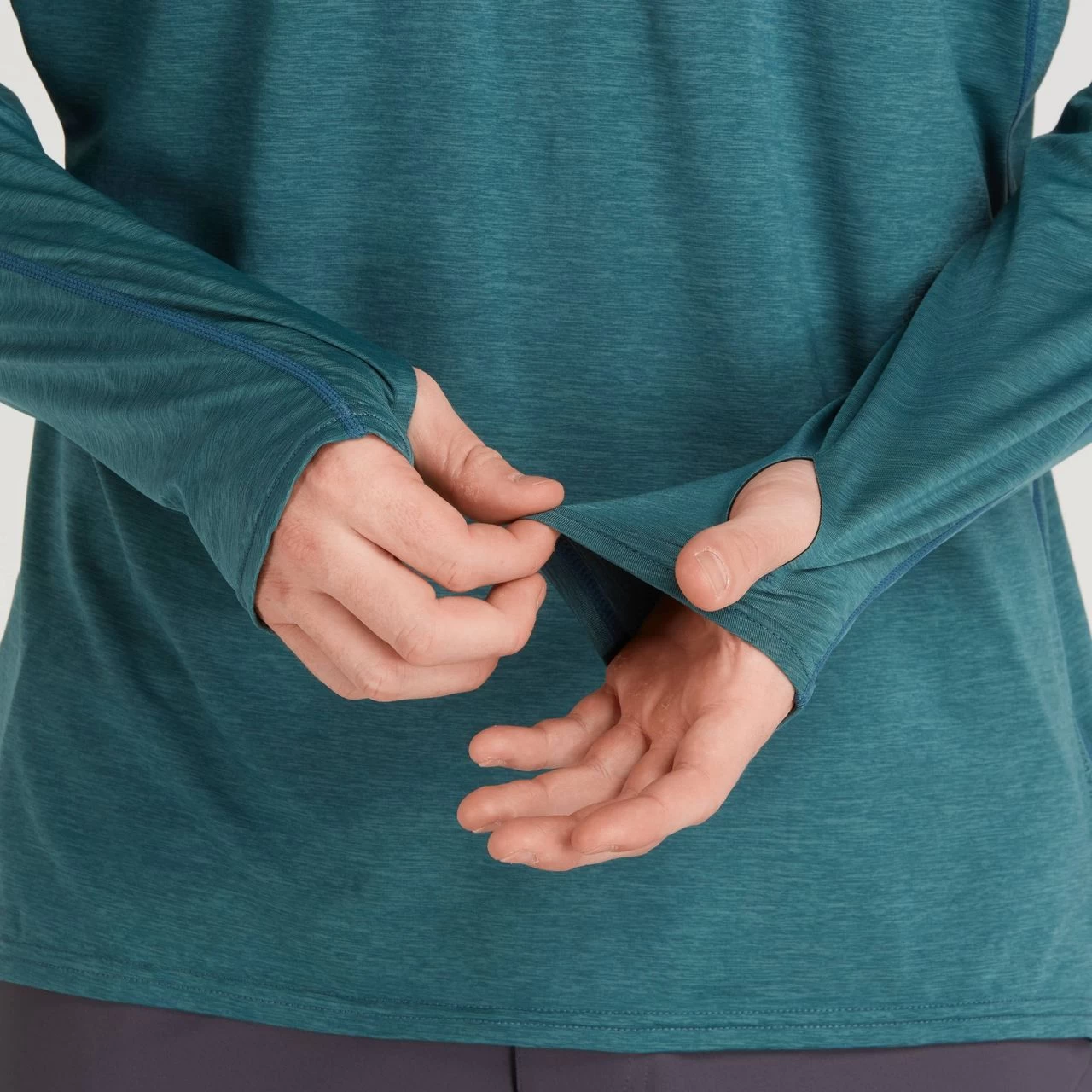 Blending style, comfort and performance, the NRS men’s Silkweight Baja Sun Shirt extends the sun protection to the neck and hands with a higher collar and thumbholes. A quarter-zip neck provides quick ventilation on hot days.