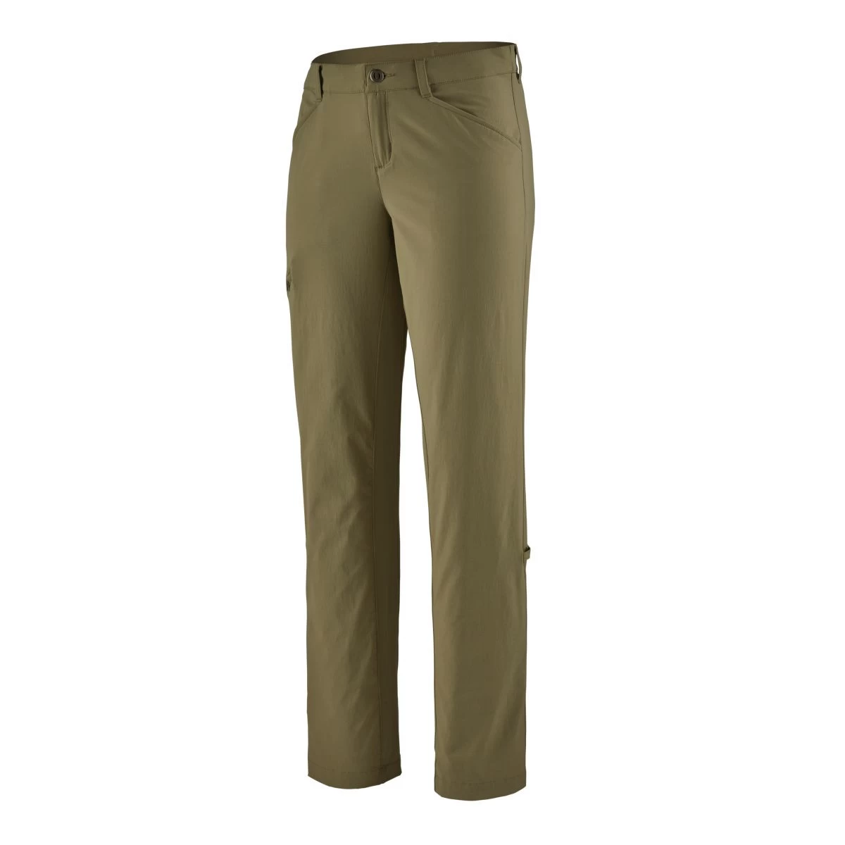 The women’s Quandary Pants from Patagonia are comfortable, multi-functional stretch-woven pants with a DWR finish for utility and range of motion for all-season use. Their classic fit is not too loose or too tight, and lets you move freely without holding you back. Quick-dry, packable, and light nylon/spandex fabric is perfect for travel and backpacking. The Quandary Pants make for an easy choice when you’re gearing up for your next hiking/climbing/scrambling/trekking/globe-trotting adventure. Regular (32-inch) inseam.