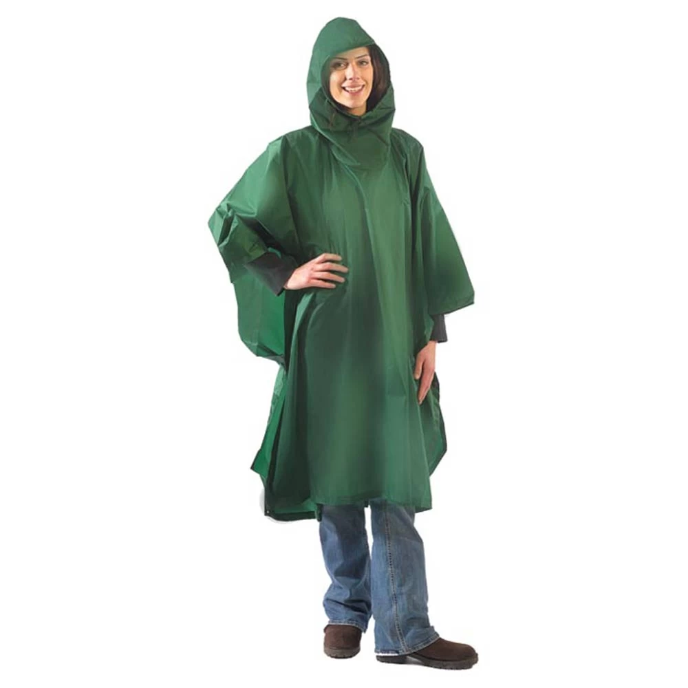 The Ultralite Poncho/Shelter is cut even larger than standard ponchos for additional coverage and versatility. Reinforced, rust-resistant snaps form wrist openings secure sides. Top cinches closed and four corners have durable nylon loops for tie downs for conversion to shelter. Made from 1.1 oz silicone impregnated ripstop nylon. **for best performance, we recommend sealing key seams with a silicone-based seam sealer** Sold in various assorted colors.