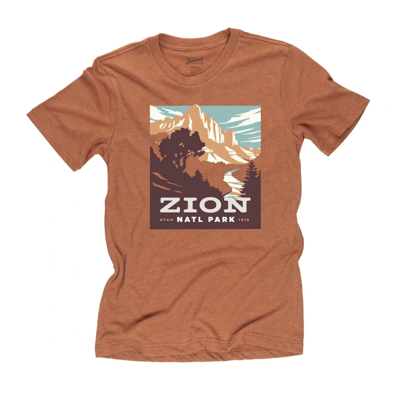 Zion National Park in southwest Utah is known for its soaring sandstone cliffs and native history. Slot canyons and spectacular vistas mark this as a place unlike any other. Our soft, yet sturdy poly/cotton tee will be your go-to for all adventures.